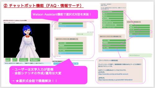 はじめに こんにちは、Watson技術担当の山下です。 前回は、あかねちゃんの概要と機能イメージを紹介させていただきました。 今回は、あかねちゃんのメイン機能であるチャットボットについて書いていきます。 1. チャットボット機能 あかねちゃんにチャット…