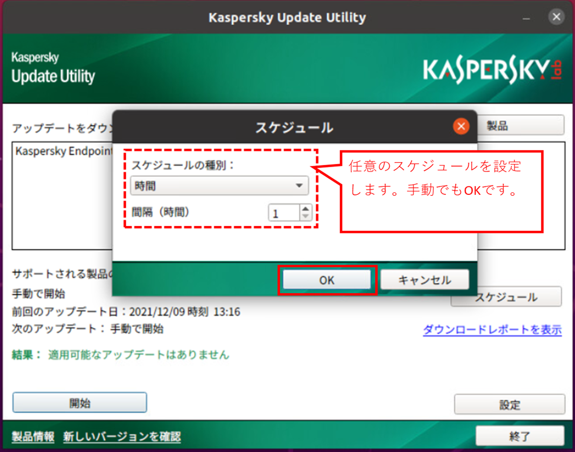 もし自動で定期的にアップデートの確認とダウンロードをしたい場合は、ここでスケジュールを設定できます。
