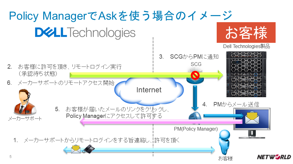 - PMを導入し、リモートアクセス設定をAsk:メーカーサポートから接続する際、お客様の許可が必要