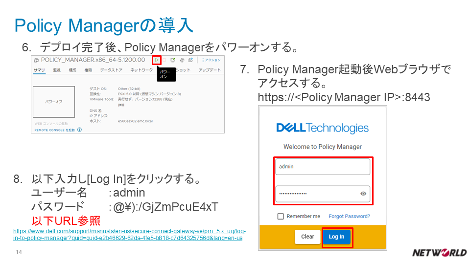 先のメールでPolicy ManagerのURLが書いてありますので、そこにアクセスするとログイン画面が表示されます。