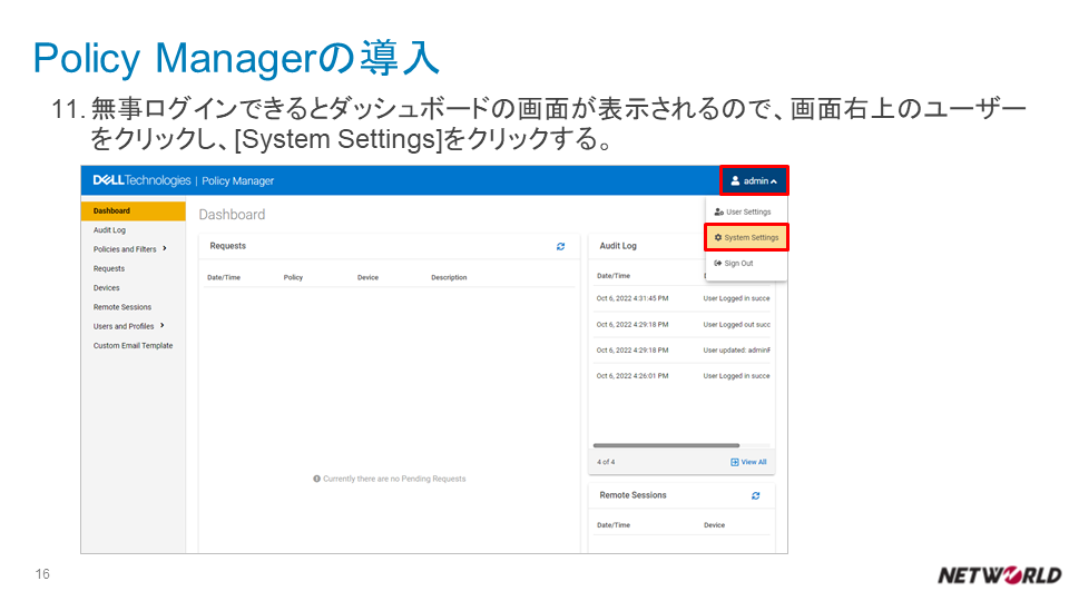 - Policy Managerからお客様メールアドレスにリモートログイン通知