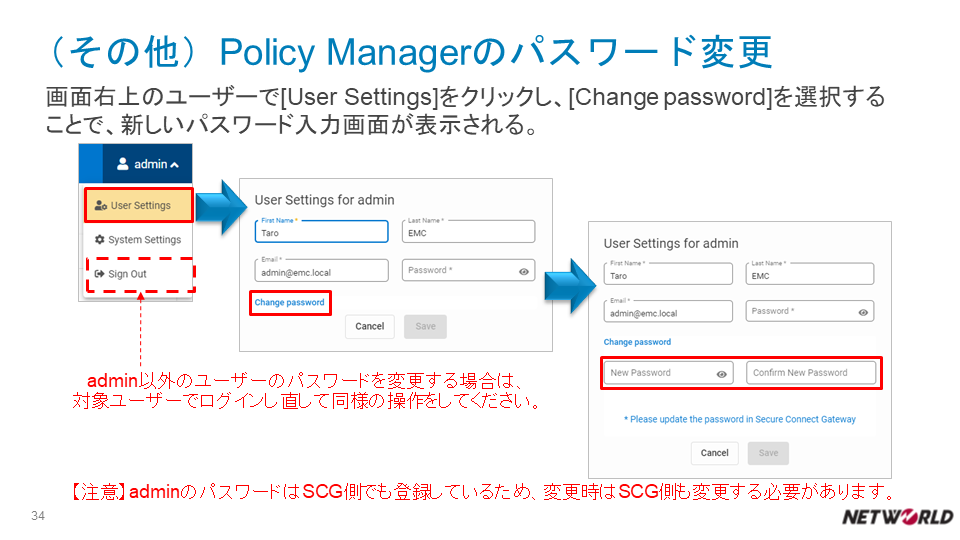 なお、adminのパスワードはSCG側にも登録しているため、変更後はSCG側の変更も忘れずに行ってください。