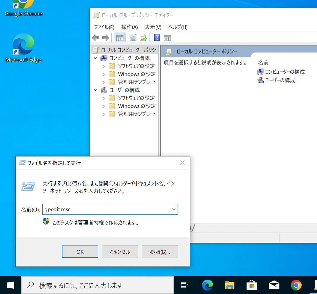 VDI 側の "gpedit.msc" でローカルグループポリシーエディターを起動します。