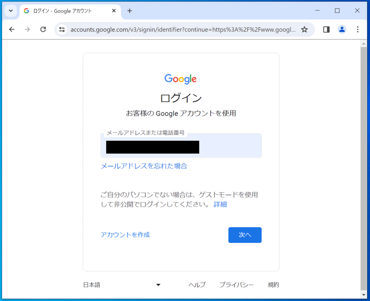 再起動後、改めて Horizon Client から VDI へ接続し、Chrome から Google へのサインインを試みます。