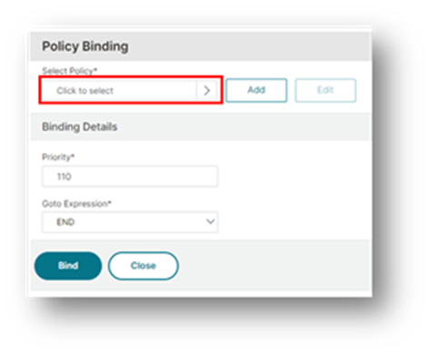- 画面が変わり「Policy Binding」の「Click to select」を選択します。