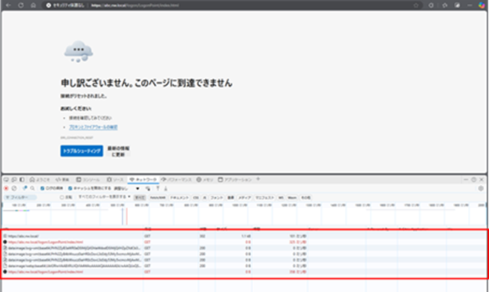 動作確認中に、VPN 仮想サーバーのポータルサイトへアクセス出来ない事象が、異なるタイミングで2回発生しました。調査のためにns.log を確認したところ、2つの URL に対して 「blocked」と記録されたログが確認されました。