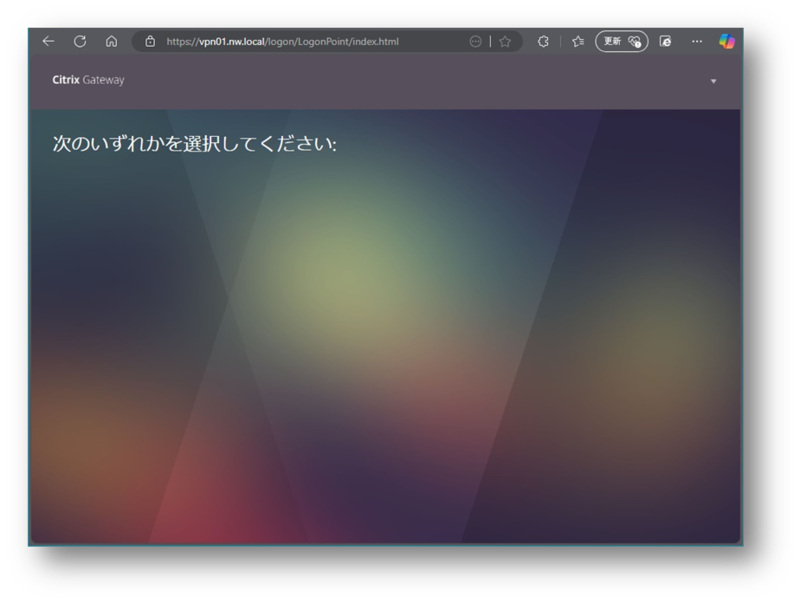 - URL が 「Citrix Gateway URL」 と一致しない場合のStoreFrontの画面。