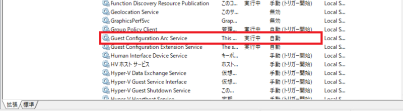 拡張タブから「Guest Configuration Arc Service」の状態を確認します。