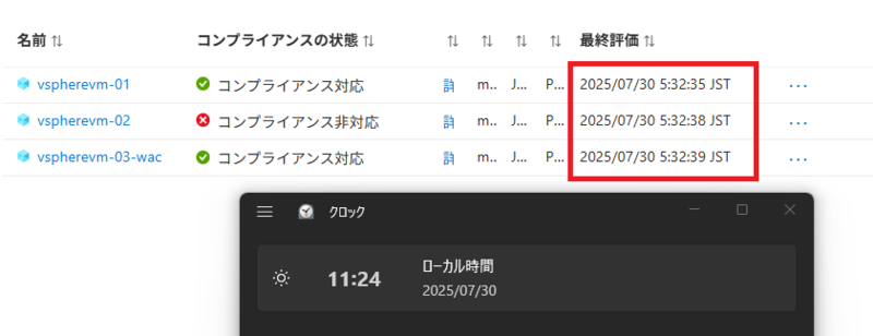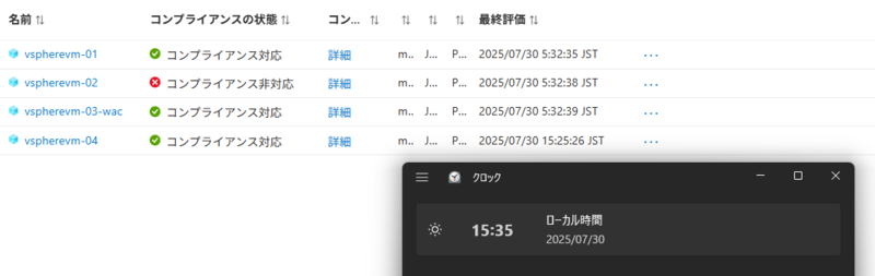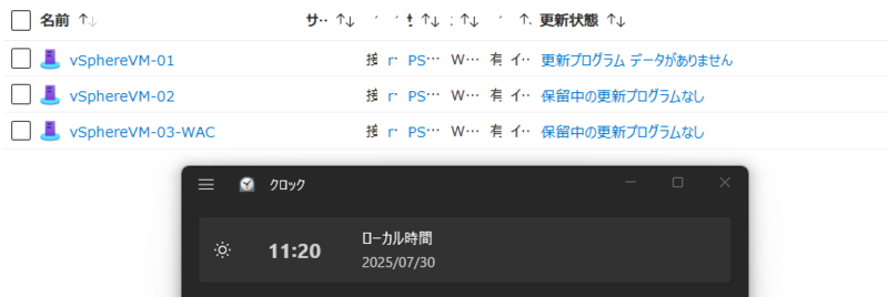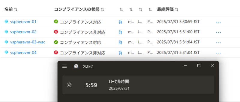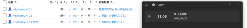 上記は11:06時点の、各VMの保留中の更新プログラムとコンプライアンスの評価の状態です。