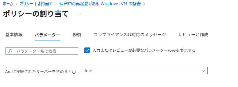 ゲスト構成カテゴリにおいて特徴的なパラメーターです。これを「True」にすることによりAzure arcのマシンをポリシー監査の範囲に含めることができます。