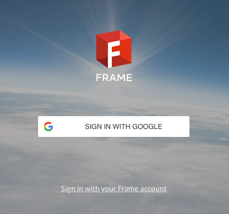 上記のサンプル図では[Sign in with Google]をメインログインオプションとして使用するように設定されたFrameのログイン画面が表示されています。ユーザーは[Sign in with Google]のボタンをクリックするだけで、あるいは既にGoogleにログインしている場合はFrameアカウントに直接アクセスできます。